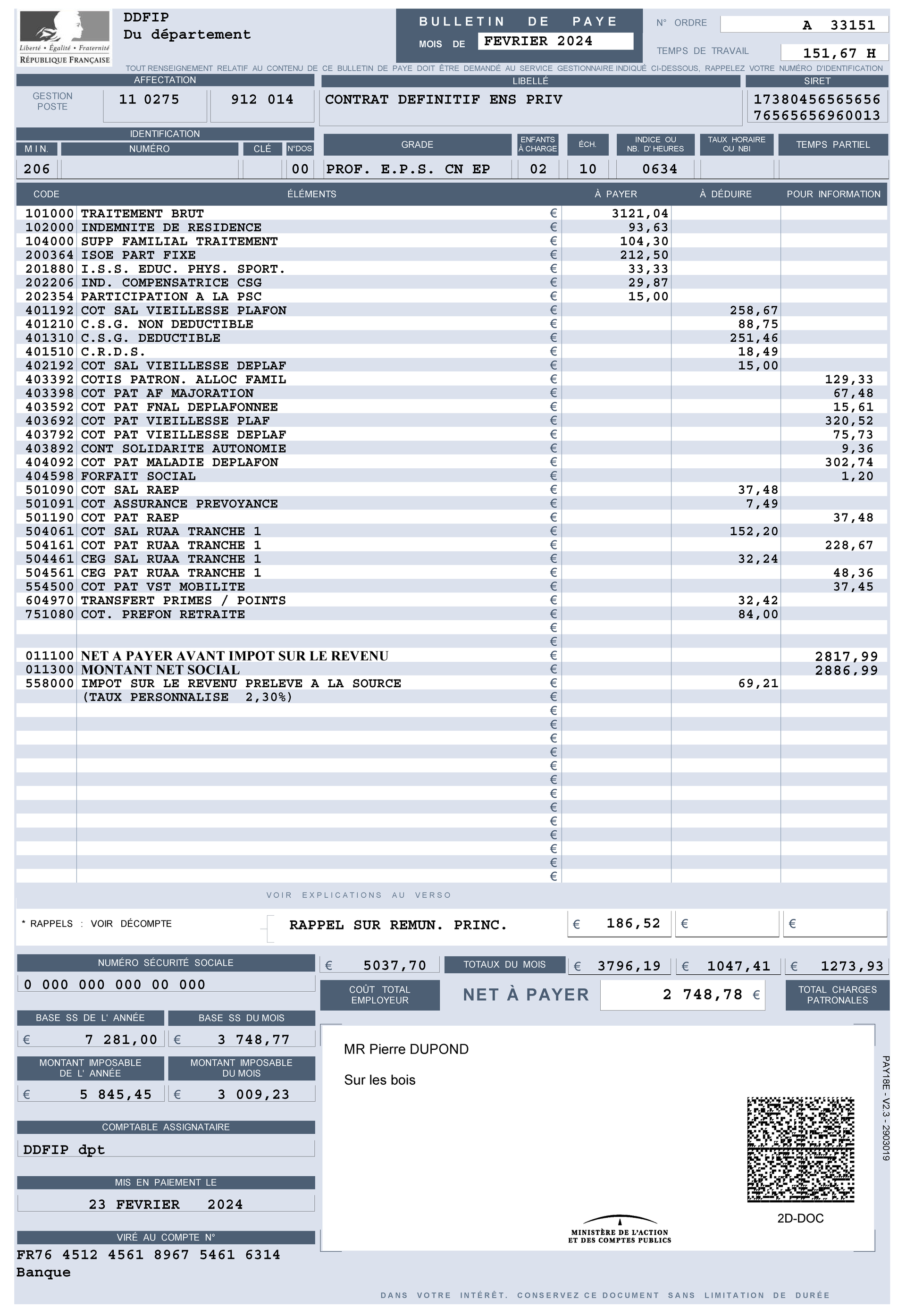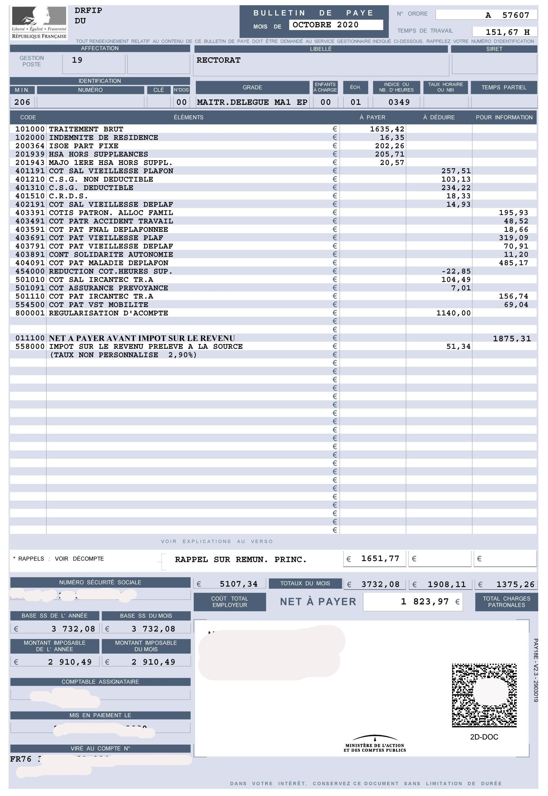 Ce montant, en net, indique ce que doit l'administration à l'enseignant compte tenu de la dette de celle-ci. il s'agit des sommes dues les mois précédents + celles du mois en cours