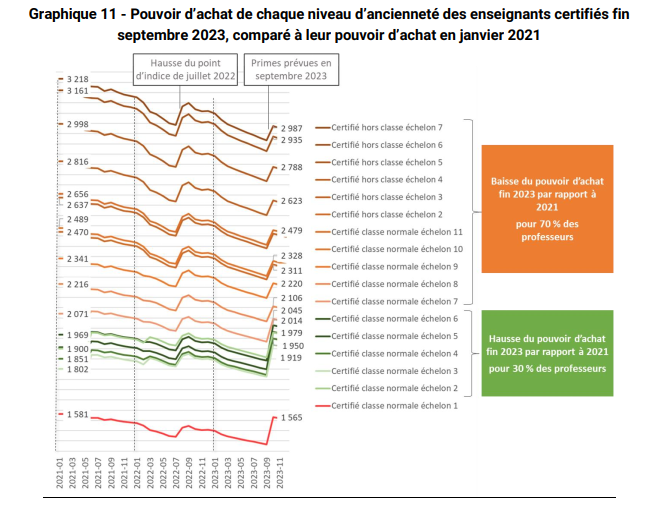 La Cour des Comptes, dans son analyse de l’exécution budgétaire de l’année 2022 relève que le ministère de l’Éducation nationale n’a pas tenu ses engagements budgétaires. En effet, ce sont l’équivalent de 4474 poste à temps complet (ETP) qui n’ont pas été occupés alors qu’ils étaient inscrits au budget. Plusieurs explications apparaissent à la lecture de ce rapport, au premier rang desquelles le manque d’attractivité du métier de professeur notamment dans le second degré (...).