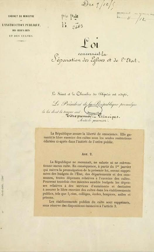 120 ans de la loi concernant la séparation des Églises et de l'État