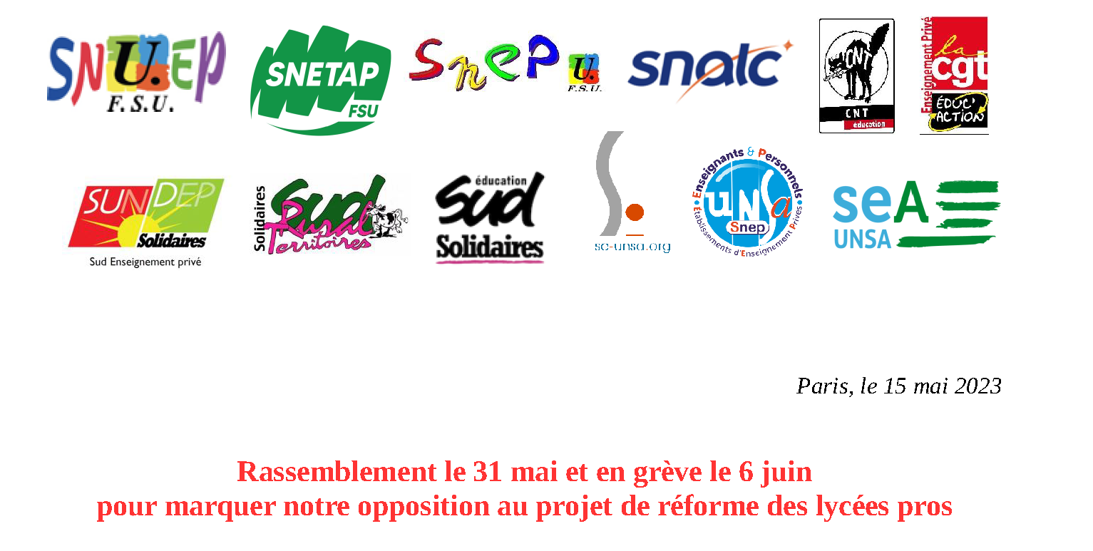 L'intersyndicale voie pro appelle les personnels à se mobiliser par la grève et dans les manifestations le 6 juin en rendant visible notre opposition à ce projet de réforme.